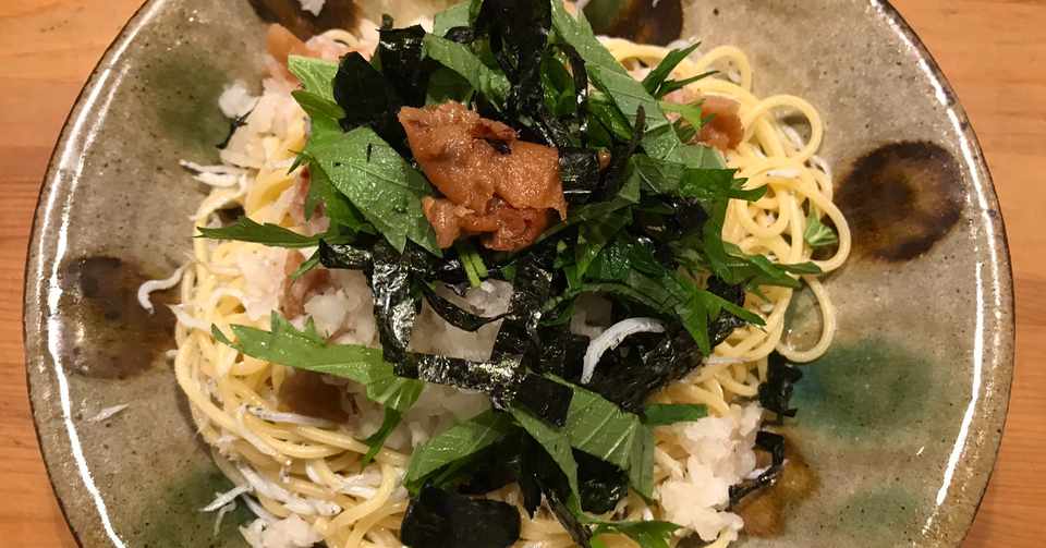 ねり梅ペーストと釜揚げしらすと大葉の和風パスタ ゴンママ日記