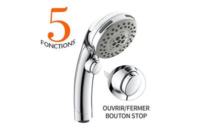 Accessoires De Salle De Bain Homelody Pommeau De Douche Chrome Avec Bouton Stop Douchette A Main 5 Jets Au Choix Pomme De Douche Picots Anticalaire Type Universel Darty